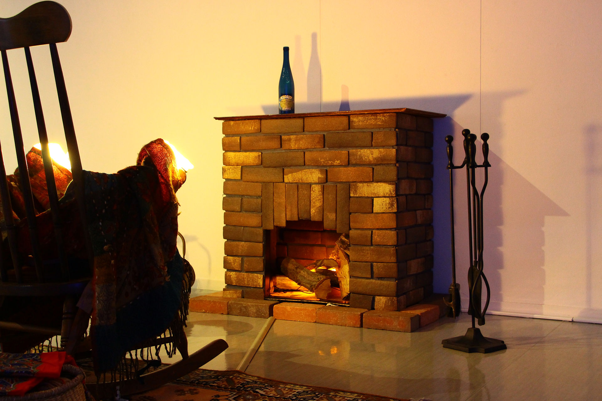 暖炉の前にロッキングチェアを置き、ロッキングチェアはモーター制御により揺れている。手すりにはLEDが組み込んだ老人の手足をおき、規則的に明滅している。「嘘と煙」の関係性を表すことを目的としている。